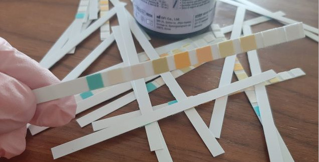 - Badanie ogólne moczu - wykonane testem paskowym, pozwala ocenić m.in. ciężar właściwy, pH, obecność leukocytów, erytrocytów, białka, glukozy i innych parametrów.